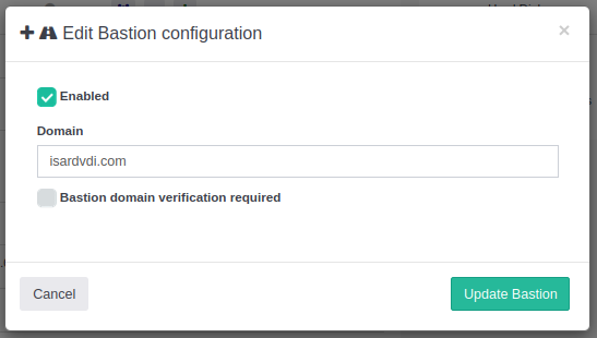 To use Bastion, you need a base domain that points to the IP address of the IsardVDI server. From this base domain, subdomains containing the UUIDs of the virtual desktops will be generated, allowing identification and routing to each desktop.