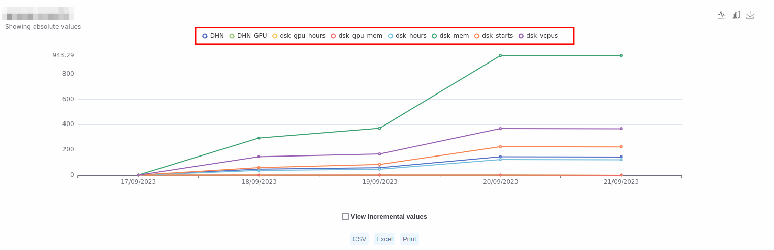Parameter: Each of the different consumptions recorded. For example, how many desktops have been booted, how many hours have they been booted, how much memory have they used, how much storage has been used, etc.