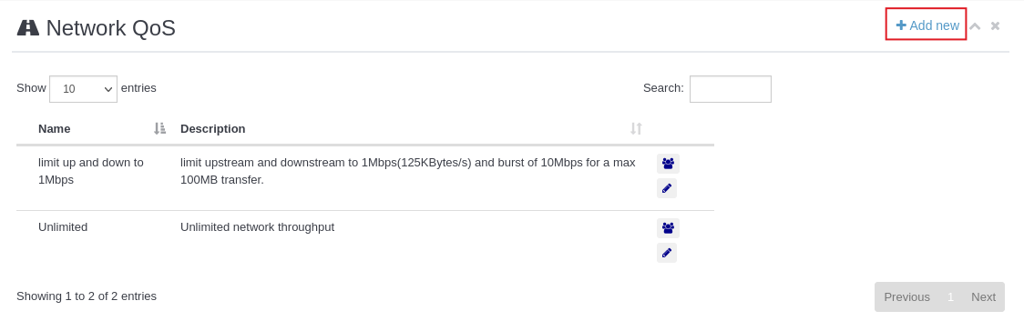 QoS: limit up and down to 1 Mbps, unlimited