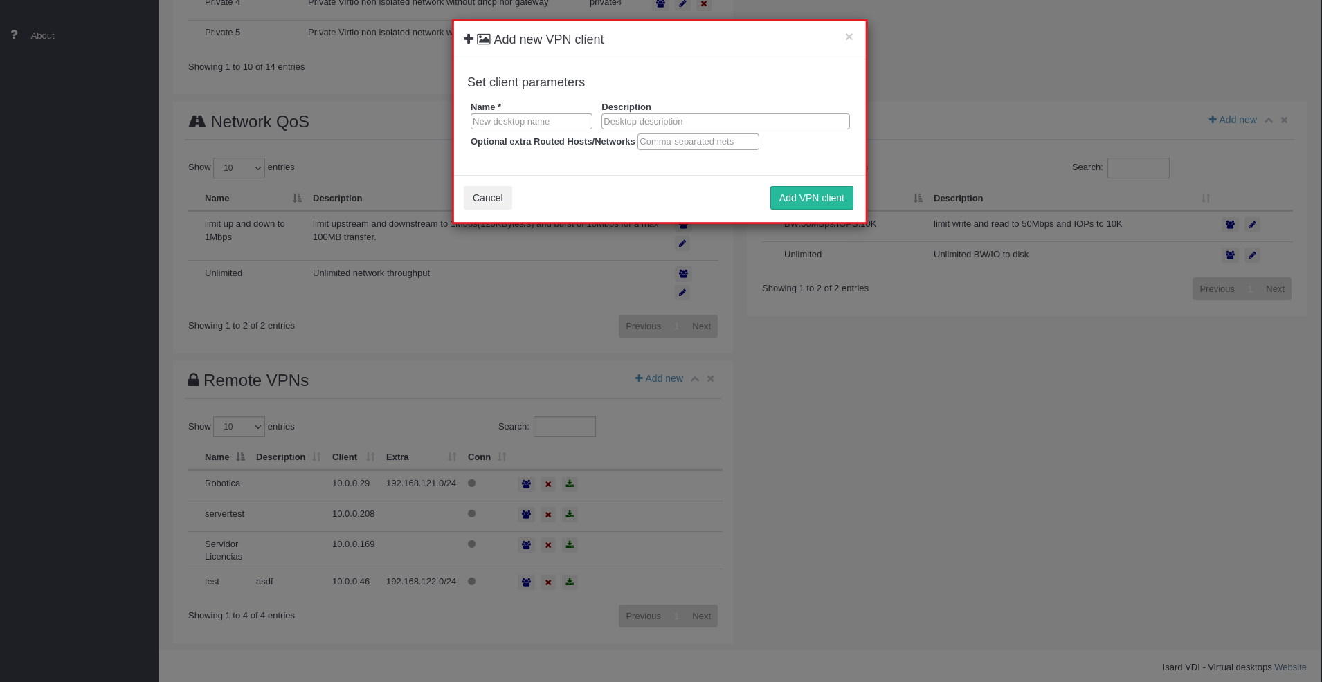 En aquesta secció es poden afegir xarxes privades als escriptoris.