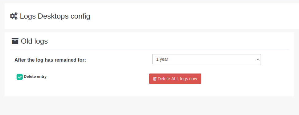 En aquesta secció, es pot configurar l'eliminació automàtica de logs que superin una certa antiguitat. Aquest procés es realitzarà diàriament a les 00:30 UTC.