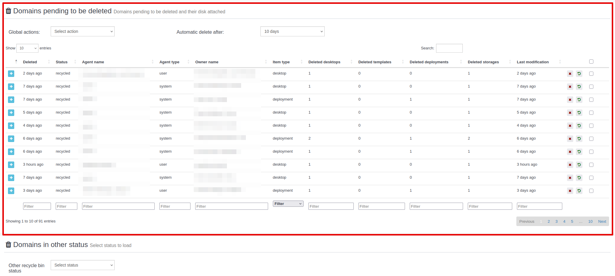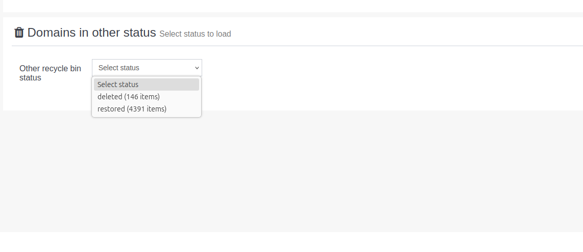 - Status: En aquest apartat en sortiran els ítems que estan en estat 'recycled', es a dir, no han estat esborrats definitivament.