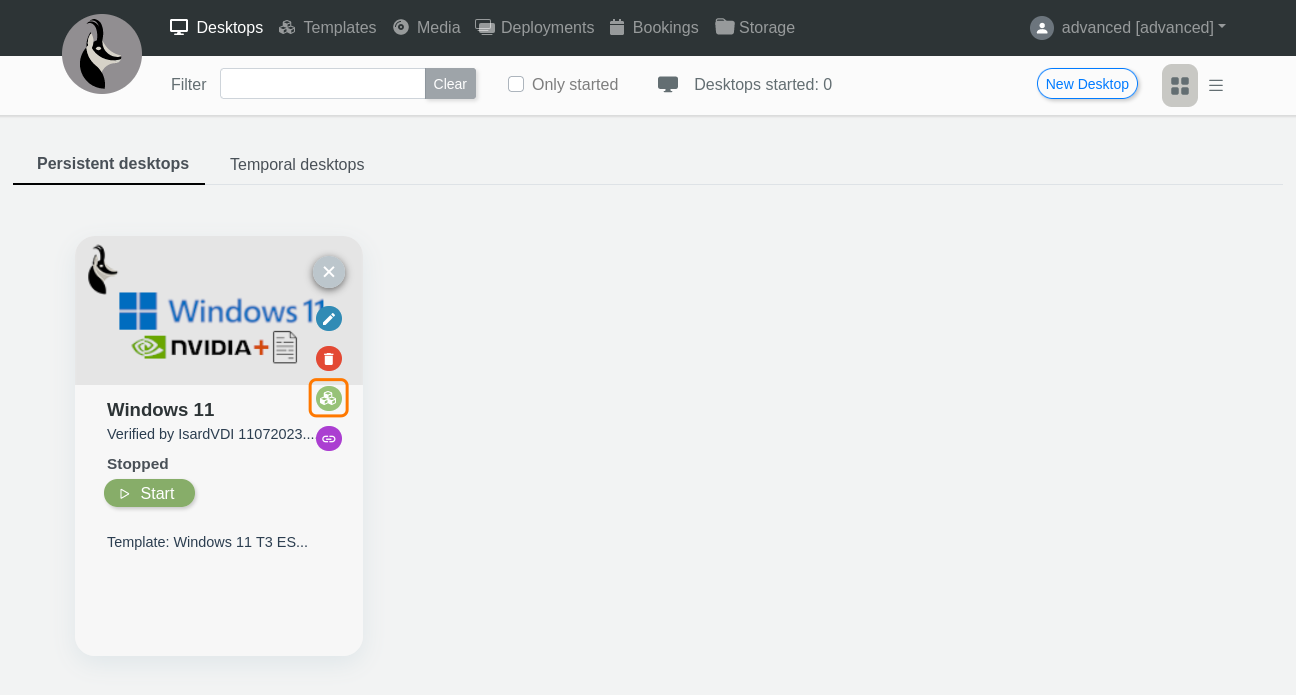 Quan acabi la pujada podràs crear un nou escriptori arrencant des d'aquest arxiu ISO fent clic a la icona d'escriptori verda (