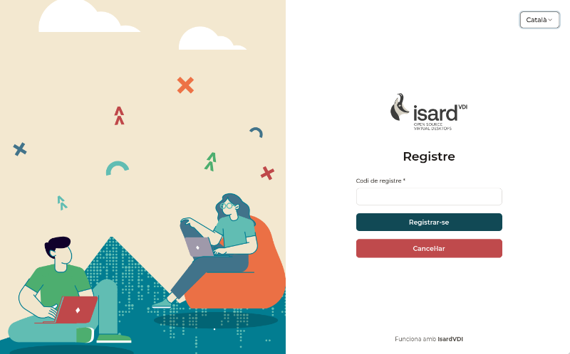 Si és la primera vegada que s'accedeix com a usuari apareixerà el formulari per a introduir un codi de registre.