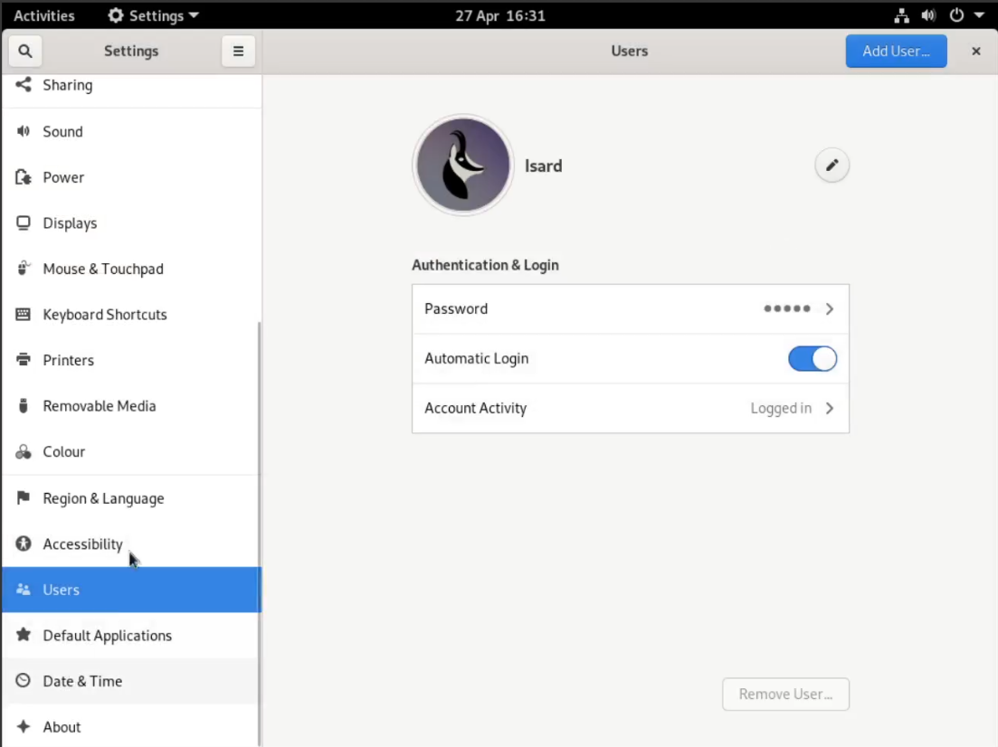 Inici de sessió - GNOME Xorg