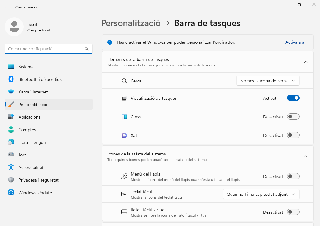 Es desactiven aquests elements de la barra de tasques: