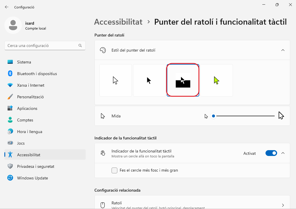 Per a una millor visibilitat del punter del ratolí, és recomanable seleccionar el mode invertit: