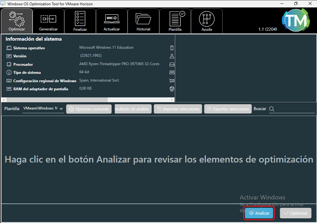 Abans de passar les Optimization Tools, es canvia l'idioma al català seguint els passos a continuació; si no, es pot obviar aquest apartat.