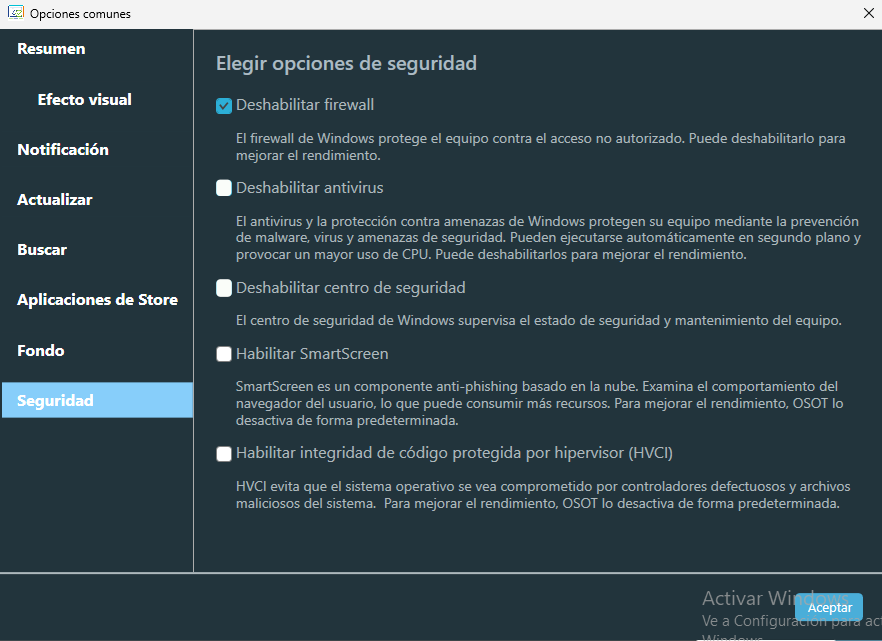 - Actualitzacions de Windows : Si es marca la casella "Deshabilitar Windows Update", no es podrà fer actualitzacions. Per poder continuar realitzant actualitzacions anem a l'apartat "Actualitzar", desmarquem les següents caselles i seleccionem "Habilitar Windows Update".