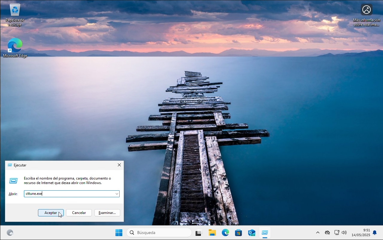 Prem Win+R, escriu cttune.exe i prem Enter.