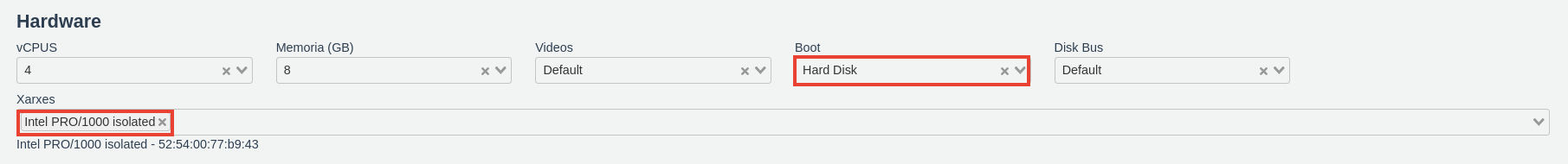 - Xarxes: Intel PRO/1000 isolated