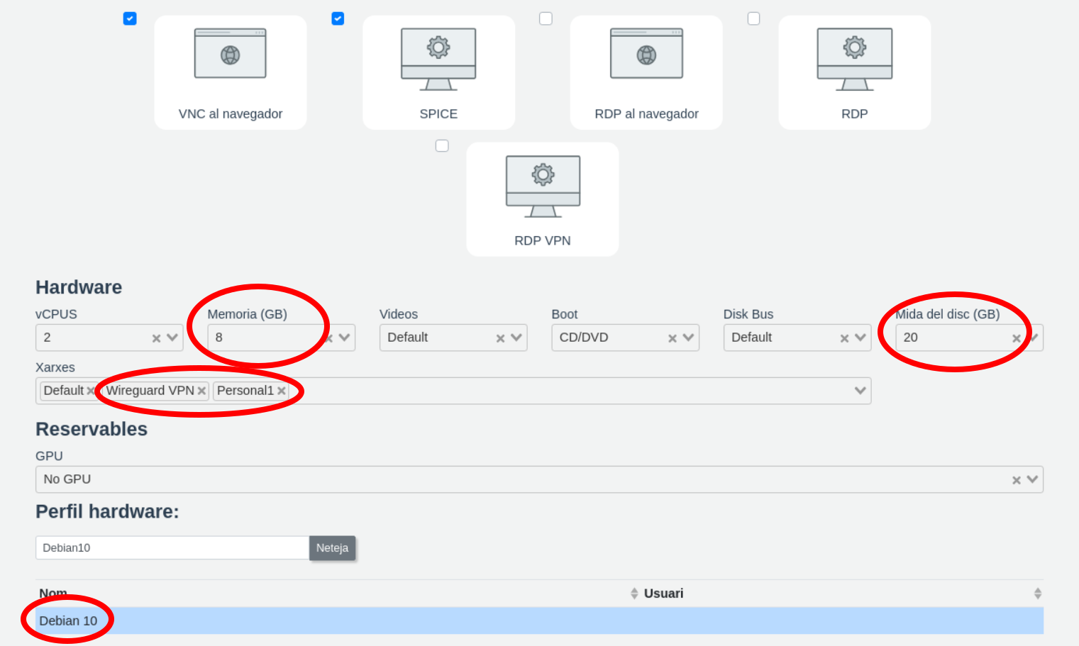 - ether2: vpnisard (xarxa WireGuardVPN per connectar-nos amb el nostre arxiu VPN de l'usuari d'IsardVDI)