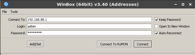 Des d'un client connectat a la xarxa interna LAN, podem fer servir l'eina Winbox.