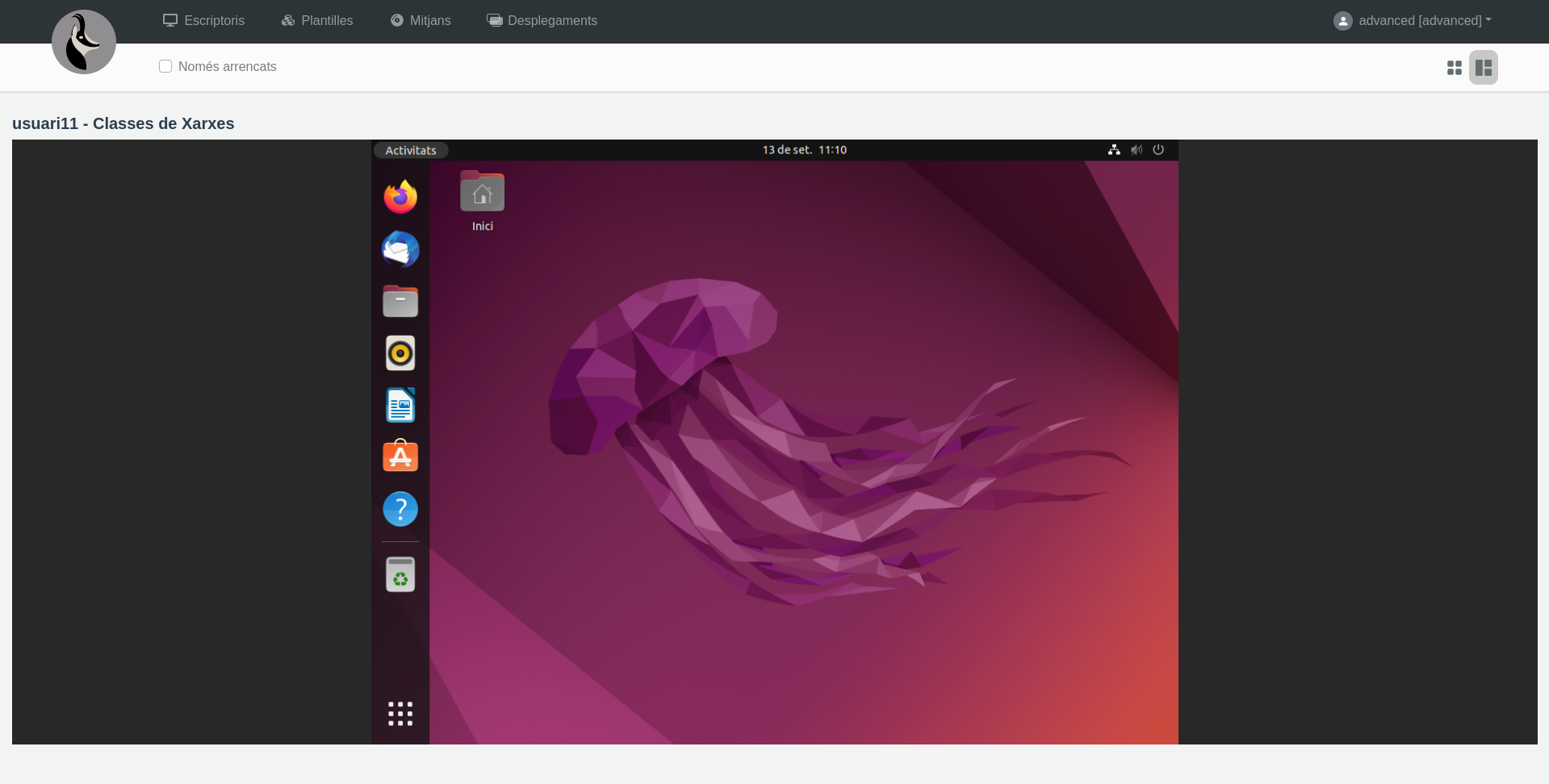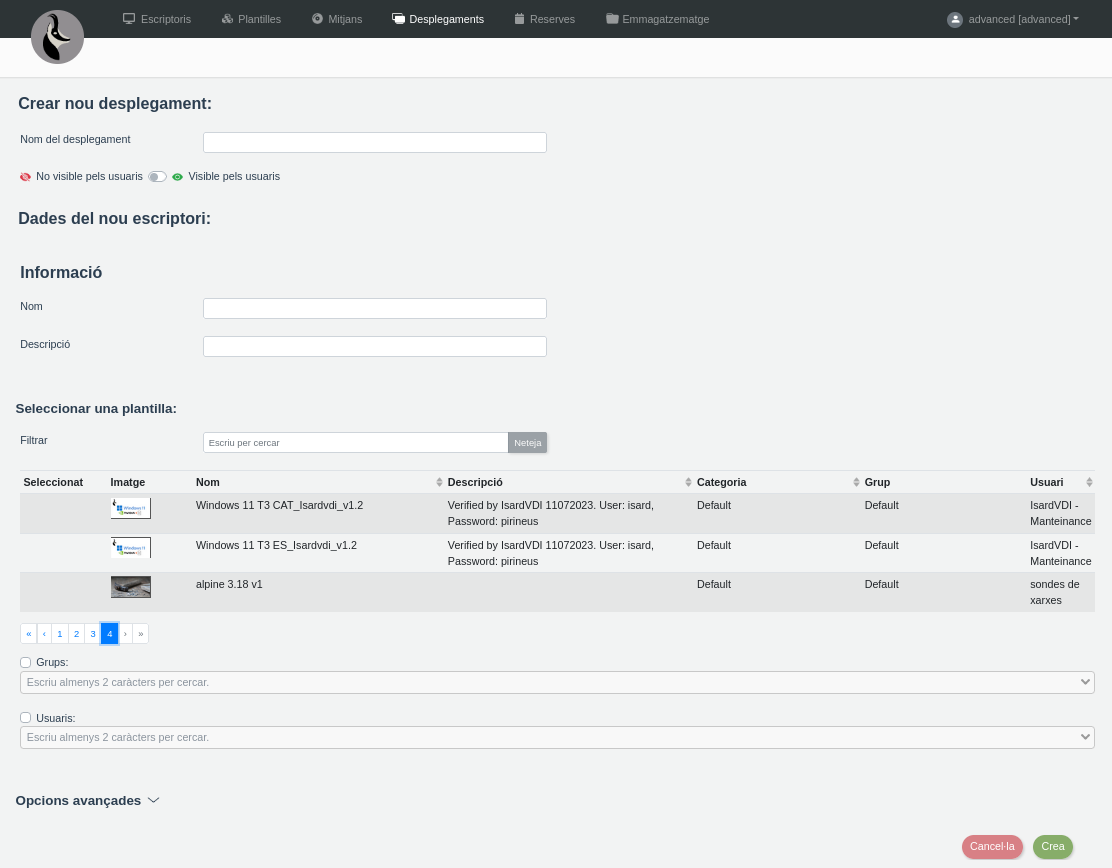 2. També es crearà un escriptori per al vostre usuari dins del desplegament