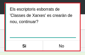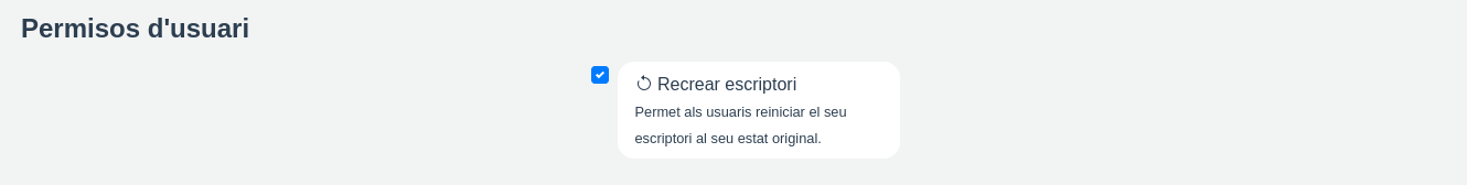 Aquesta opció permet a l'usuari recrear el seu escriptori. Això significa que l'usuari podrà restablir el seu escriptori a l'estat inicial en què es va crear.