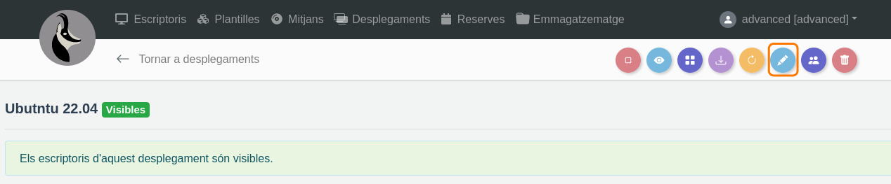 Per a editar un desplegament, es pot fer de dues maneres prement la icona