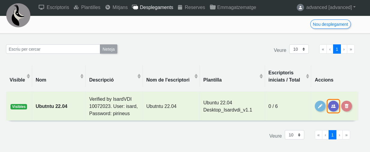 Per a editar els usuaris del desplegament, es pot fer de dues maneres prement la icona