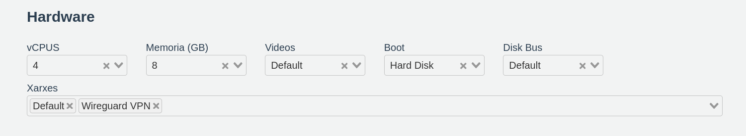 En aquest apartat es pot editar el maquinari que es vulgui tenir a l'escriptori: