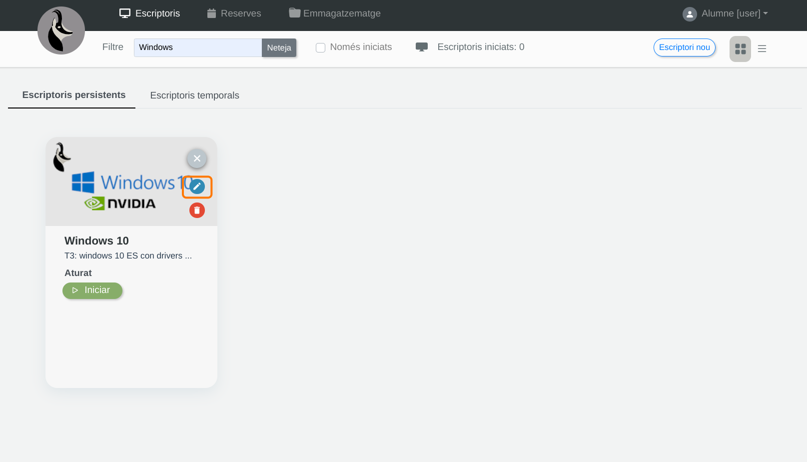 Es poden editar els següents apartats apart del nom de l'escriptori, la seva descripció, i una imatge descriptiva.