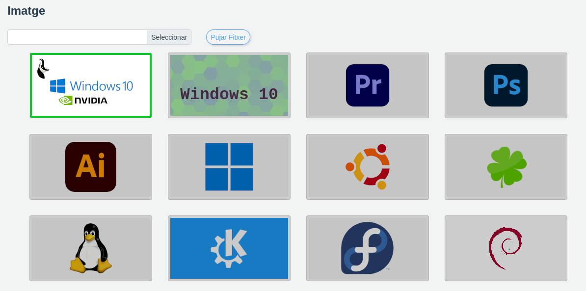 En aquesta secció es pot seleccionar la imatge de portada que tindrà l'escriptori a la vista principal.