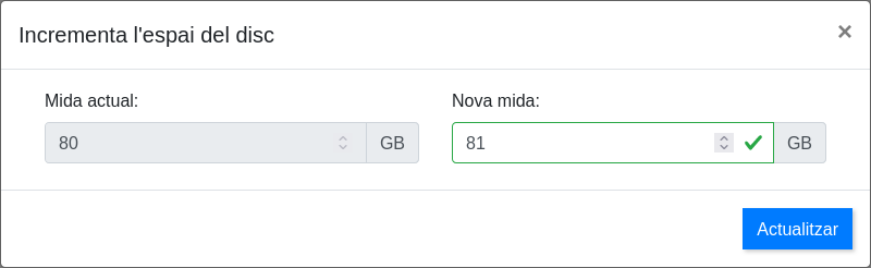 - No podeu augmentar la mida del disc dels escriptoris existents