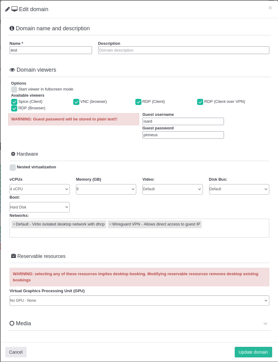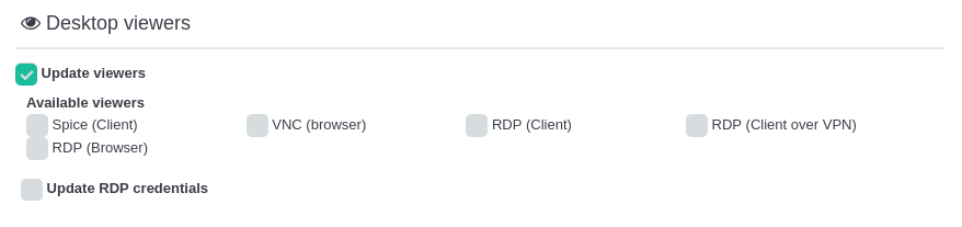 | Domain viewers | Especifica los visores que se desean mostrar al iniciar el escritorio. Además, se puede configurar el inicio automático del escritorio en modo de pantalla completa |