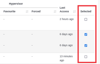 Para seleccionar un escritorio, simplemente se tiene que pulsar en la fila de la tabla. Los escritorios seleccionados aparecerán como marcados en la casilla de "selected" al final de la fila. Aunque se navegue a la página siguiente, los escritorios seleccionados permanecerán marcados.