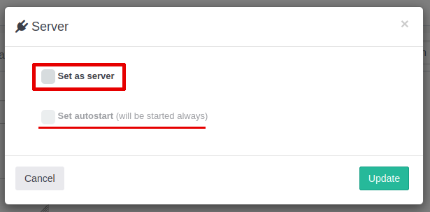 | Deactivate server autostart | Desactiva la opción autostart en los escritorios puestos como server. Una vez hecha la acción en los 'server' no se iniciarán automáticamente. |