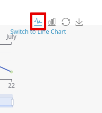 Por defecto se muestra como un gráfico de barras. Pulsando el primer botón junto a la gráfica, se puede cambiar a un gráfico lineal: