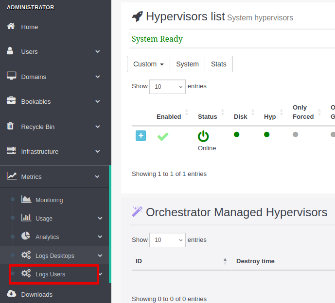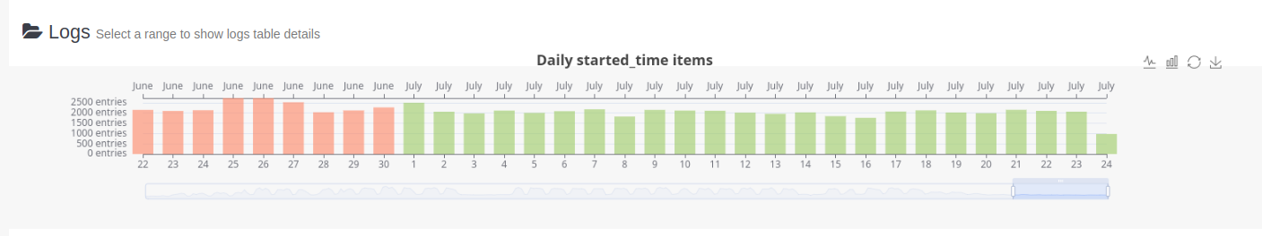 Aquí encontrarás dos secciones. La superior muestra una gráfica con los logs de los escritorios. En la parte inferior se mostrarán los logs con más detalle.