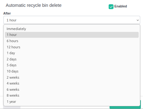 Si esta función no se activa, se aplicará la funcionalidad de la papelera de reciclaje tal como está configurada para toda la instalación. Es decir, lo que está configurado en el apartado Recycle Bin.