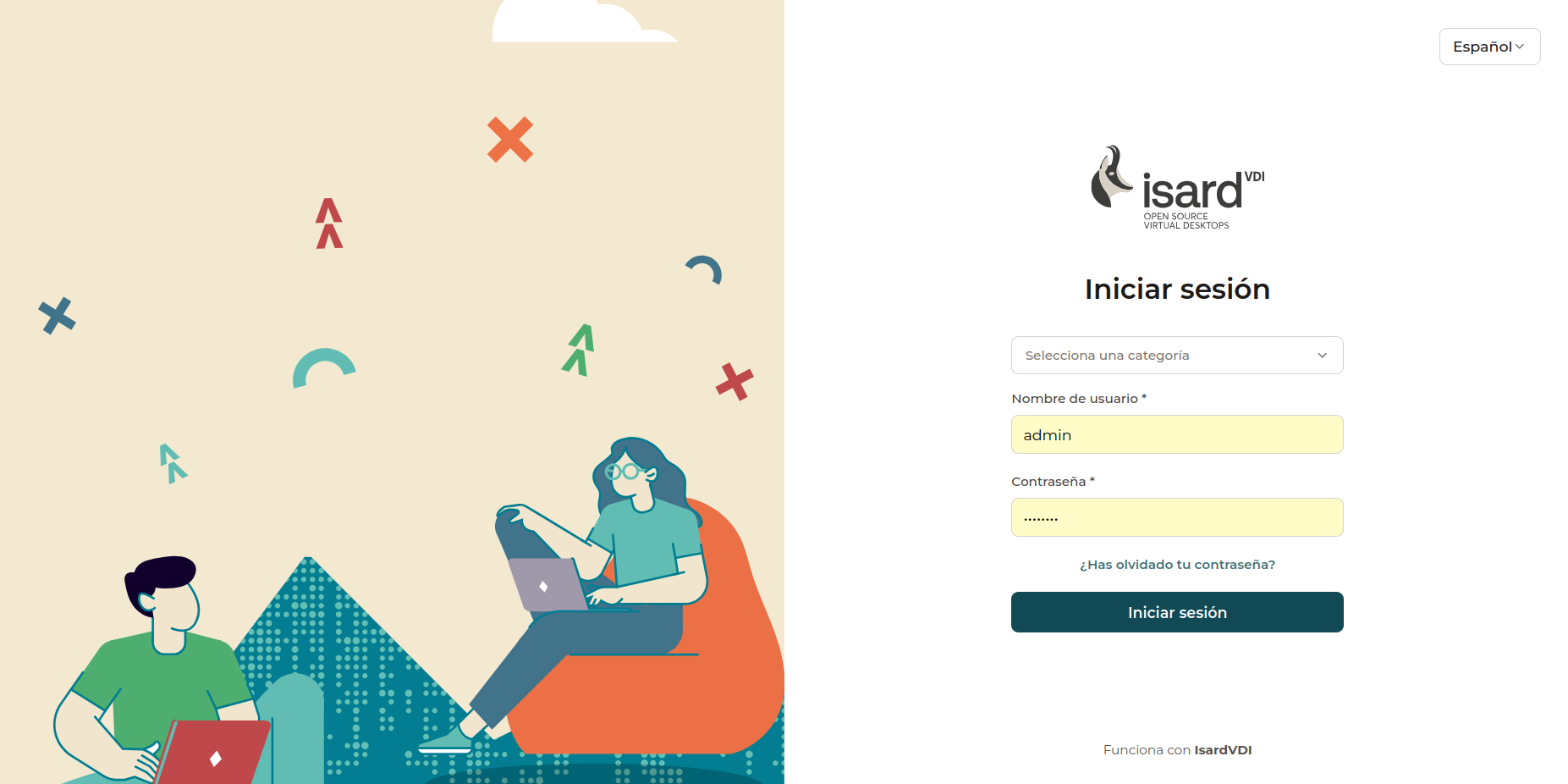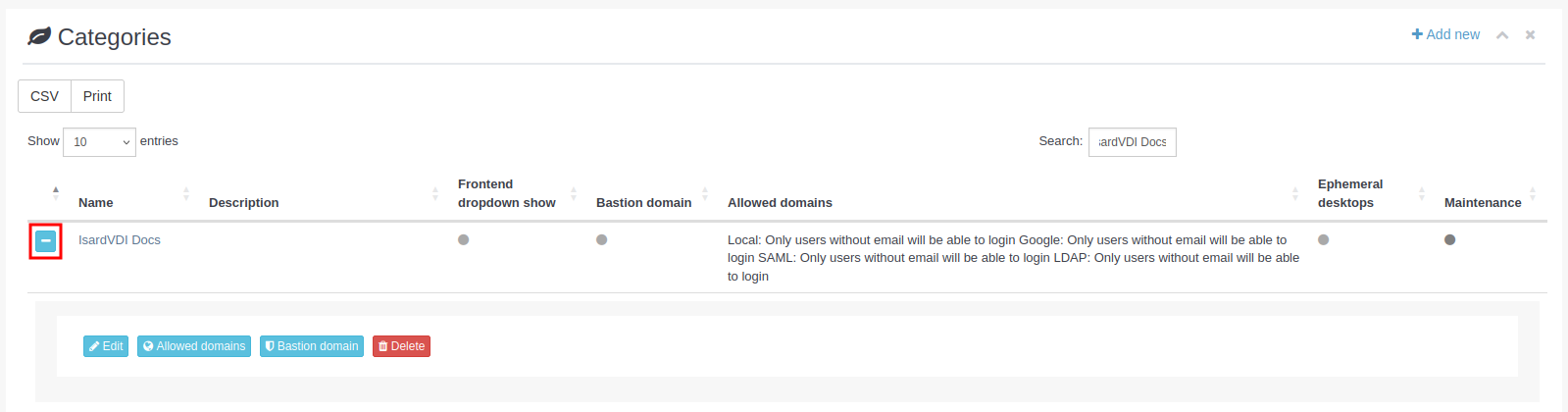 - Ephemeral desktops: Si la categoría tiene disponibles los escritorios temporales, el círculo será verde; si no, gris.