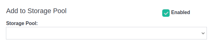 - Add to Storage Pool: Se pueden añadir a un punto de montaje todos los discos que se generen en esta categoría. Si no se aplica esta opción, el punto de montaje será el que está configurado en el apartado de Storage Pool por defecto en la instalación.