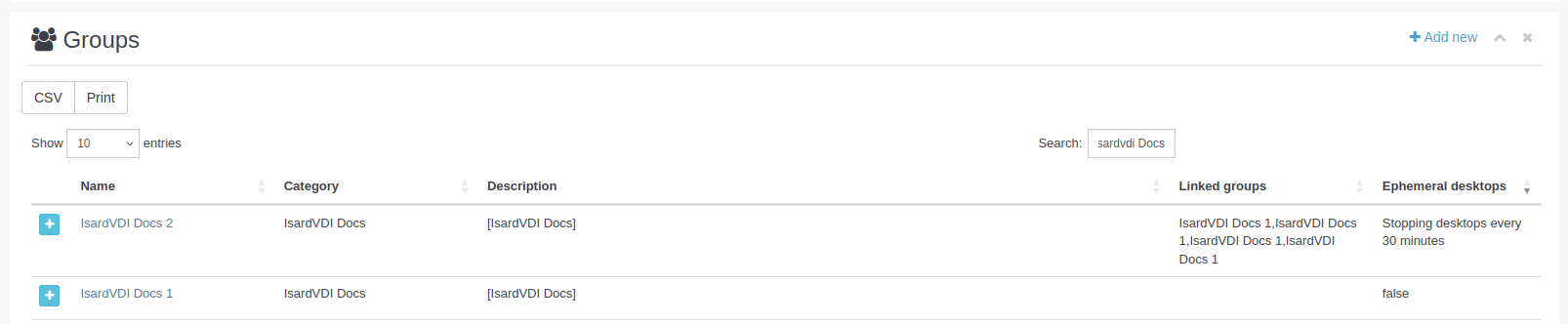 - Linked groups: Son los grupos enlazados, y se pueden añadir grupos de la misma categoría. Todos los recursos compartidos con sus grupos enlazados se heredarán automáticamente por el grupo creado. Por ejemplo, si un Grupo A se crea con un Grupo B como grupo enlazado, todos los recursos compartidos con el Grupo B también se compartirán con el Grupo A, pero no viceversa.
