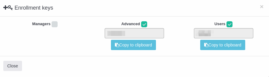 - Una cantidad ilimitada de usuarios puede registrarse utilizando la clave de inscripción proporcionada. Por tanto, se recomienda desactivarlas una vez utilizadas.