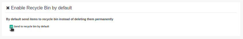 Para ello, se puede activar la opción "Send to recycle bin by default", que establecerá como comportamiento predeterminado el envío del elemento a la papelera cuando un usuario lo elimine: