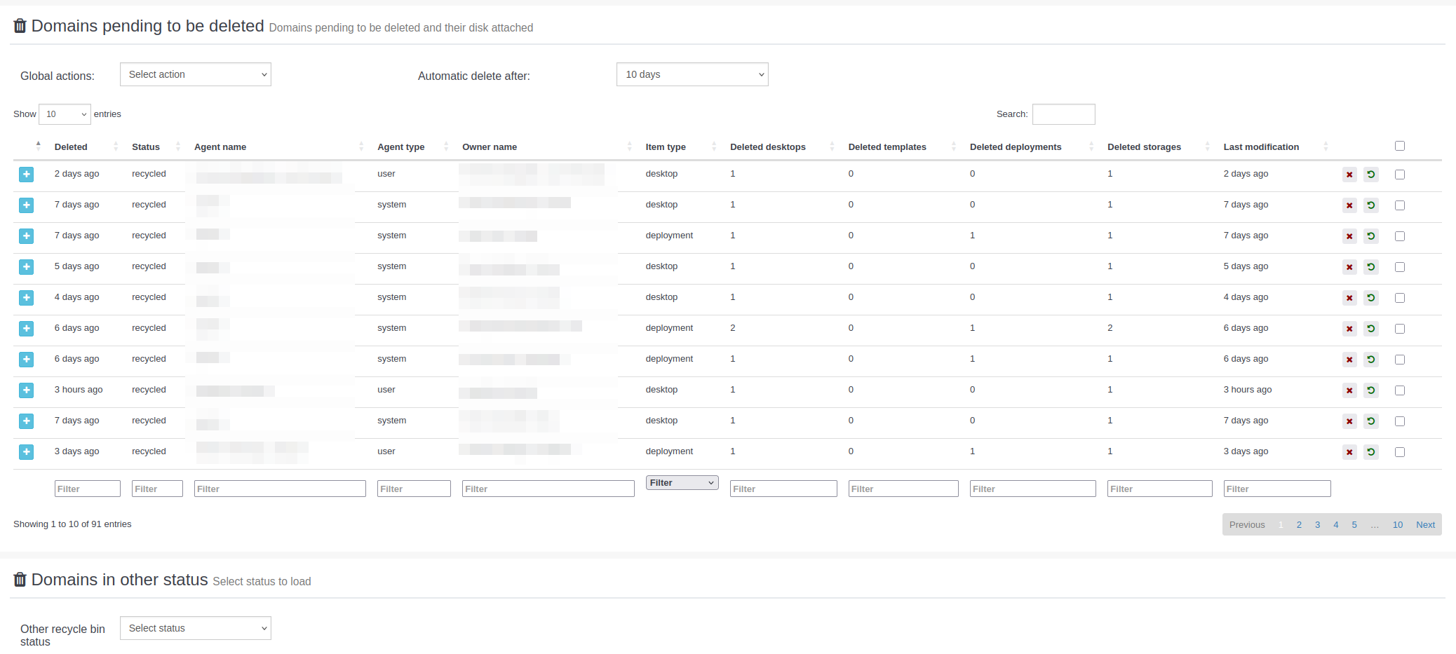 - Status: En este apartado aparecerán los ítems que están en estado 'recycled', es decir, no han sido eliminados definitivamente.