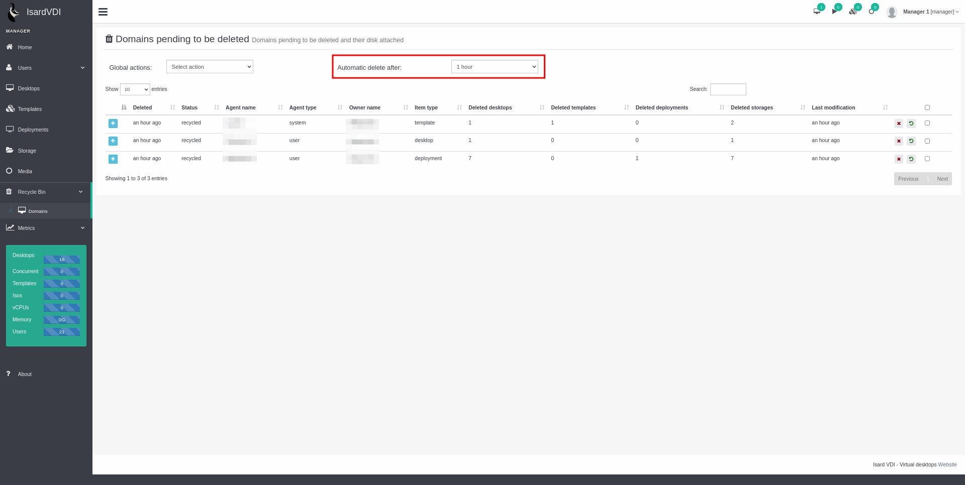 - Deleted storages: Cantidad de discos eliminados.