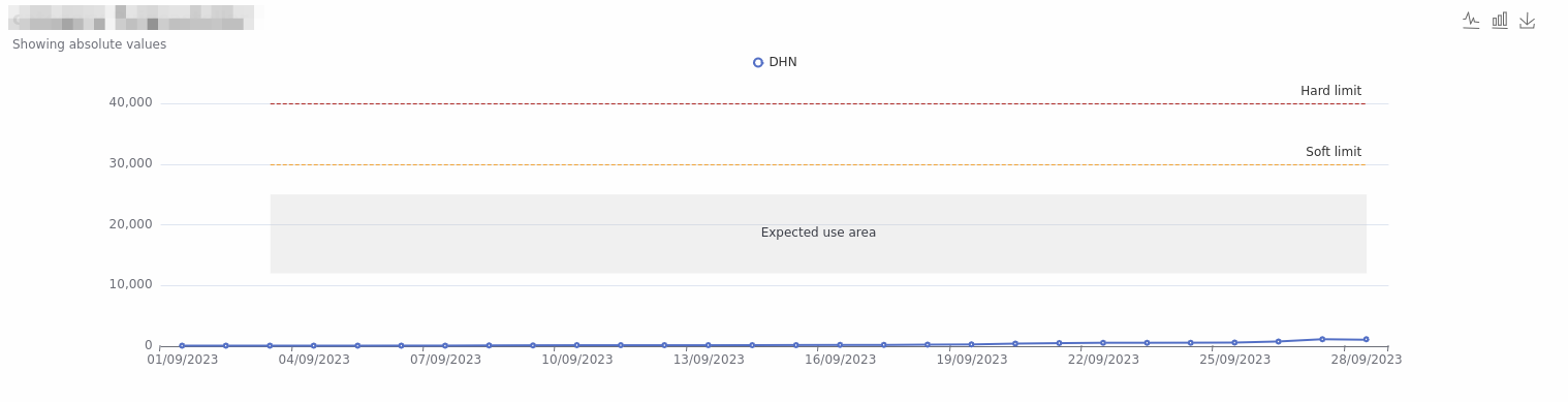 - Soft limit: Al llegar a esta limitación se informará al usuario para que reduzca el consumo de la plataforma.