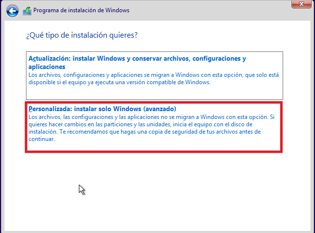 Si se quiere tener red durante el proceso de instalación, se tiene que seleccionar la red "Intel1000"