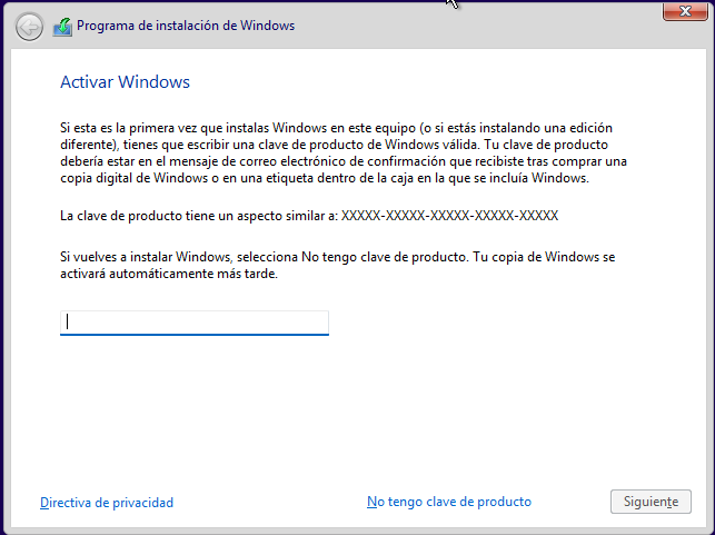Aparece el boot de UEFI y la carga del instalador de windows: