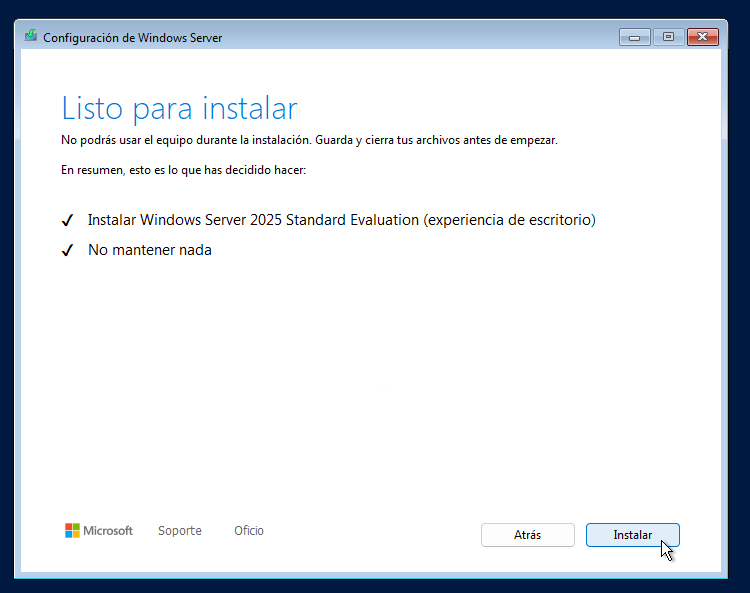 Una vez en este punto, podemos proceder con la instalación de dos formas distintas: