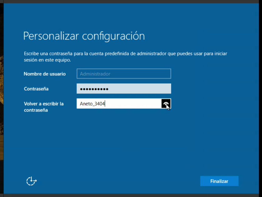 Se asigna la contraseña Aneto_3404 al usuario Administrador