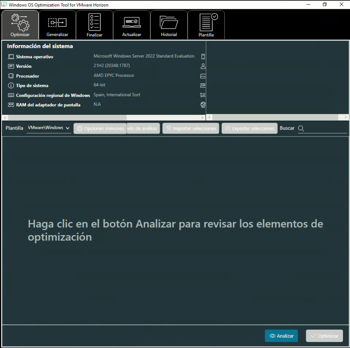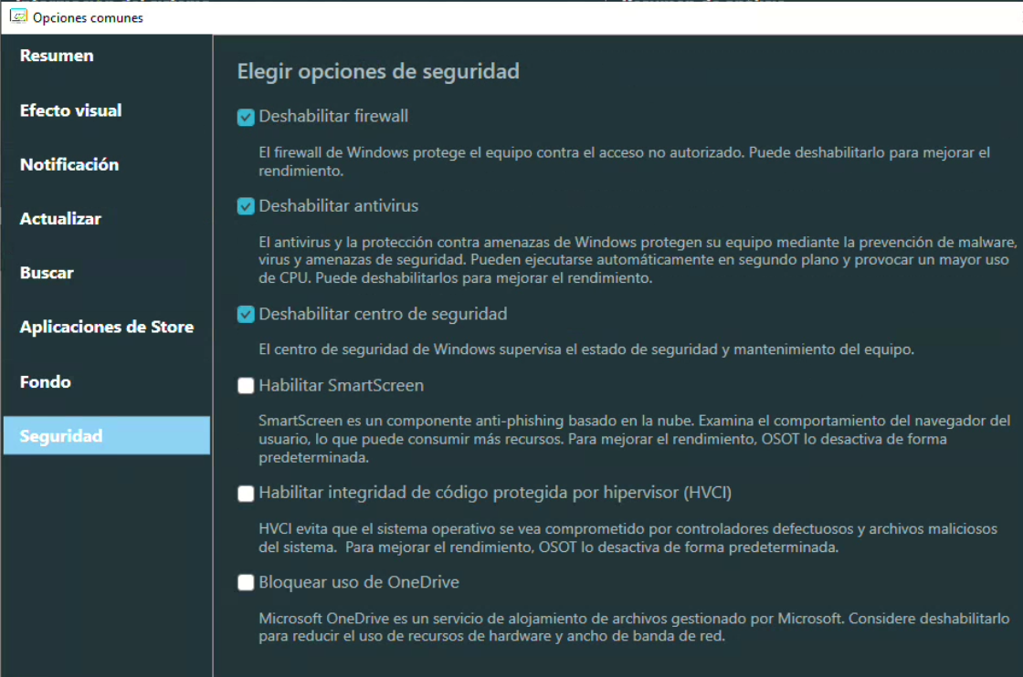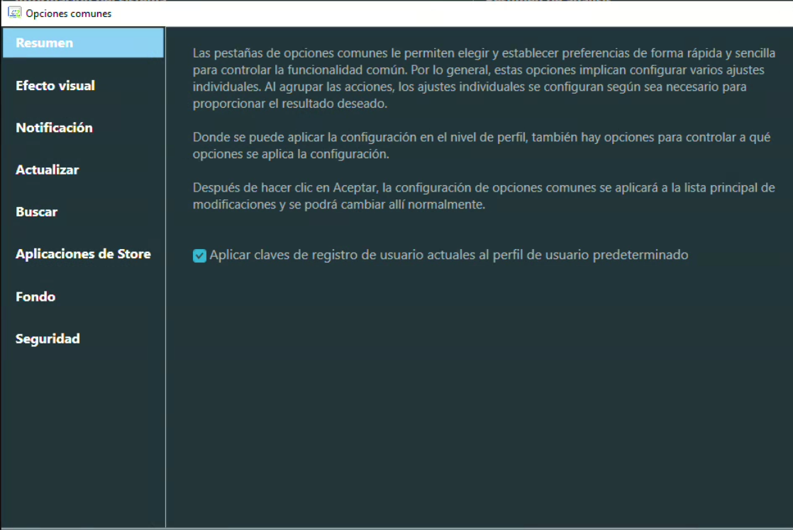 Se presiona el botón Analizar y seguidamente Opciones comunes