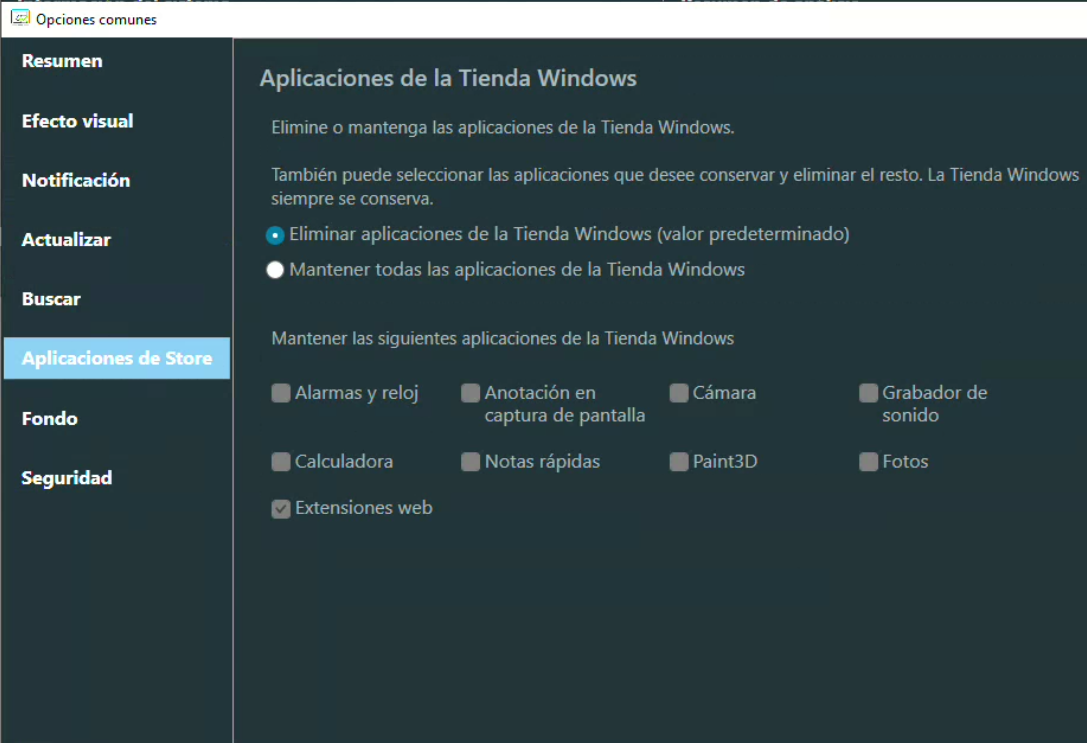 Idioma : Si se utiliza un idioma que no es el que se escogió para realizar la instalación, para no borrar los paquetes de idiomas descargados, se filtra por la palabra idioma y se desactivan las siguientes 3 opciones.