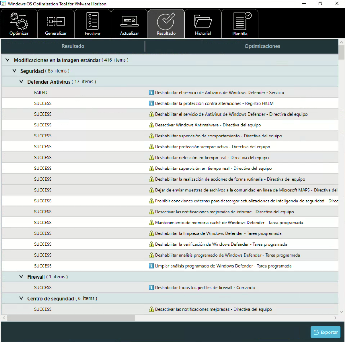 Se presiona el botón Optimizar y se espera a que salga una pantalla como la siguiente con el resumen del resultado