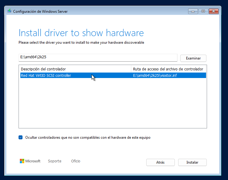 Esta instalación ya instala los controladores para el disco. Tendremos que seguir los siguientes pasos: