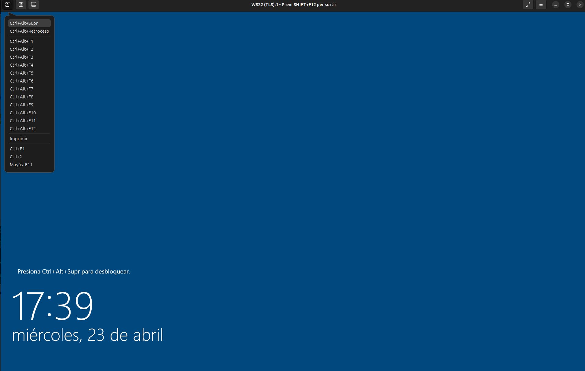 Se envia "Ctr+Alt+Supr" y se pulsa cualquier tecla del teclado en la segunda pantalla