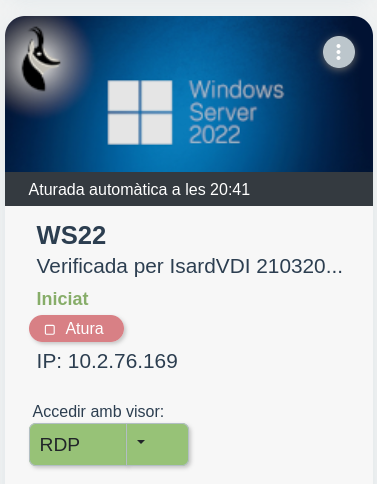 Las credenciales para acceder a los visores, por defecto, son isard/pirineus. Si desea utilizar otras credenciales, será necesario modificar el escritorio virtual. Esto pasa porque los escritorios tienen la configuración del Autologon activadas con las credenciales por defecto para que puedan iniciar sesión directamente sin pedir credenciales.