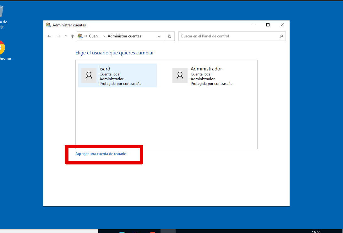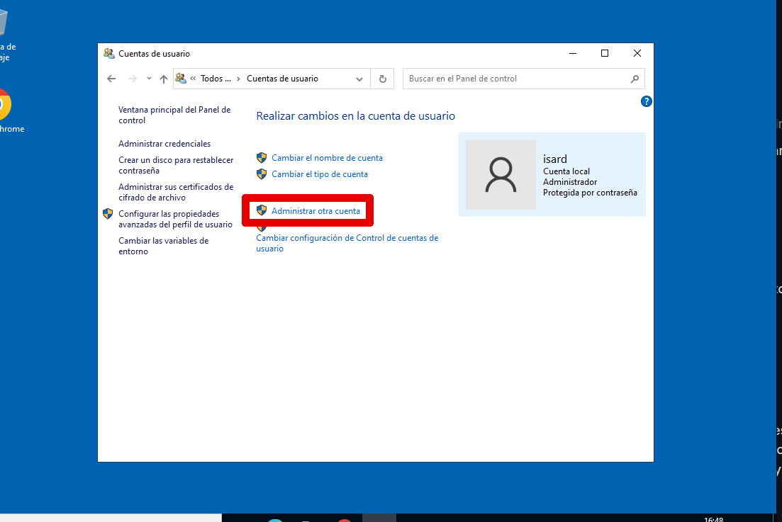 2.2 Dentro de este apartado deberemos hacer clic donde nos pone "Administrar otra cuenta" y añadiremos una nueva cuenta local.